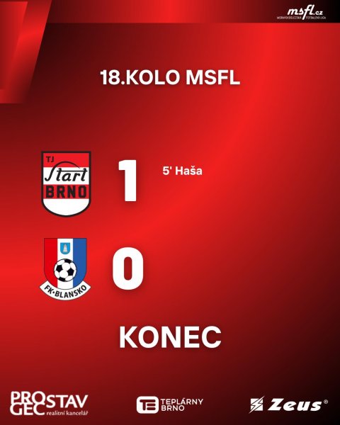 Start Brno - FK Blansko 1:0 (1:0)