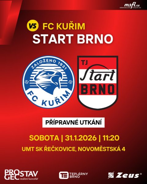 Už za dva dny čeká náš A-tým další přípravný zápas. Naším soupeřem bude divizní celek FC Kuřim. Utkání se odehraje na umělé trávě v Řečkovicích, výkop je naplánován na 11:20. Přijďte povzbudit naše mužstvo a podívat se na to jak tom jsou během zimní pauzy.